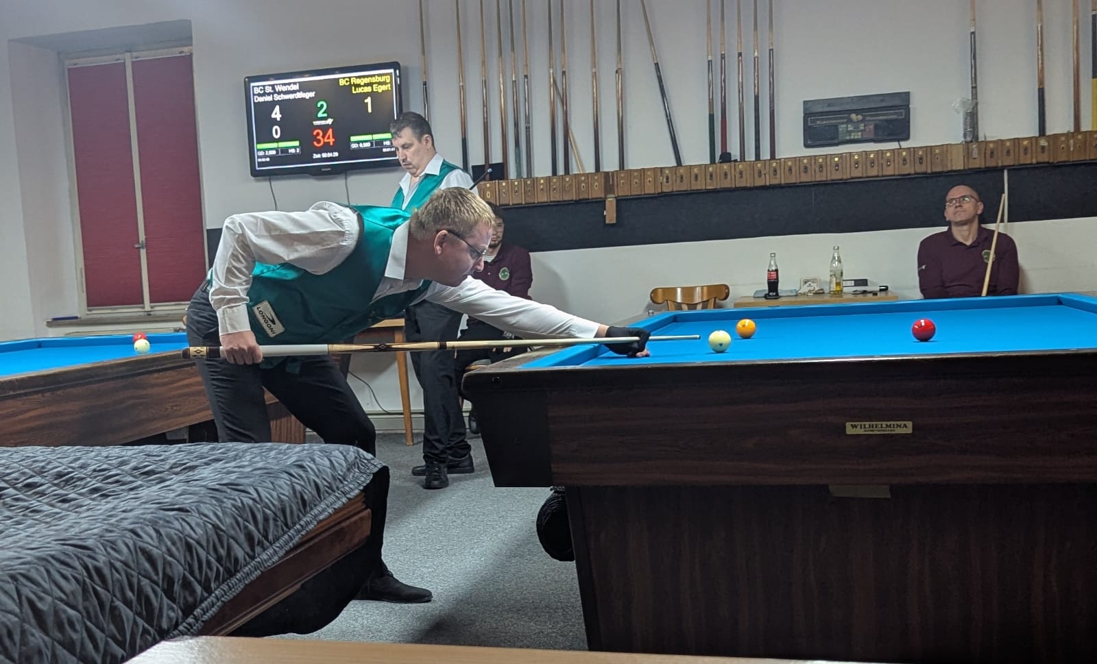 Auf verlorenem Posten stand Christian Schwerdtfeger gegen den stark aufspielenden Roman Bachmaier (4:20 in 11, 13:30 in 20). Am Ende stand eine 20:40 Niederlage in 27 Aufnahmen.