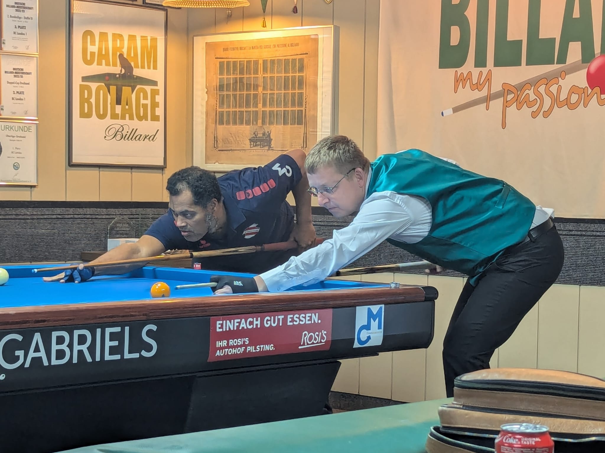 Im Spitzenspiel traf Radovan Hajek auf Schwedens Nr. 3 und EM-Teilnehmer in St. Wendel, David Pennör. Nach 6:14 in 5 ging es mit 12:20 (13 A.) in die Pause. Radovan kämpfte aber konnte den Rückstand nicht entscheidend verringern (28:34 in 24). Beim Stande von 29:39, ein letztes Aufbäumen mit einer Serie von 7, der 8. Punkt, ein schwieriger Vorbänder blieb kurz vor der Karambolage liegen, Hajek unterlag mit 37:40 in 32.